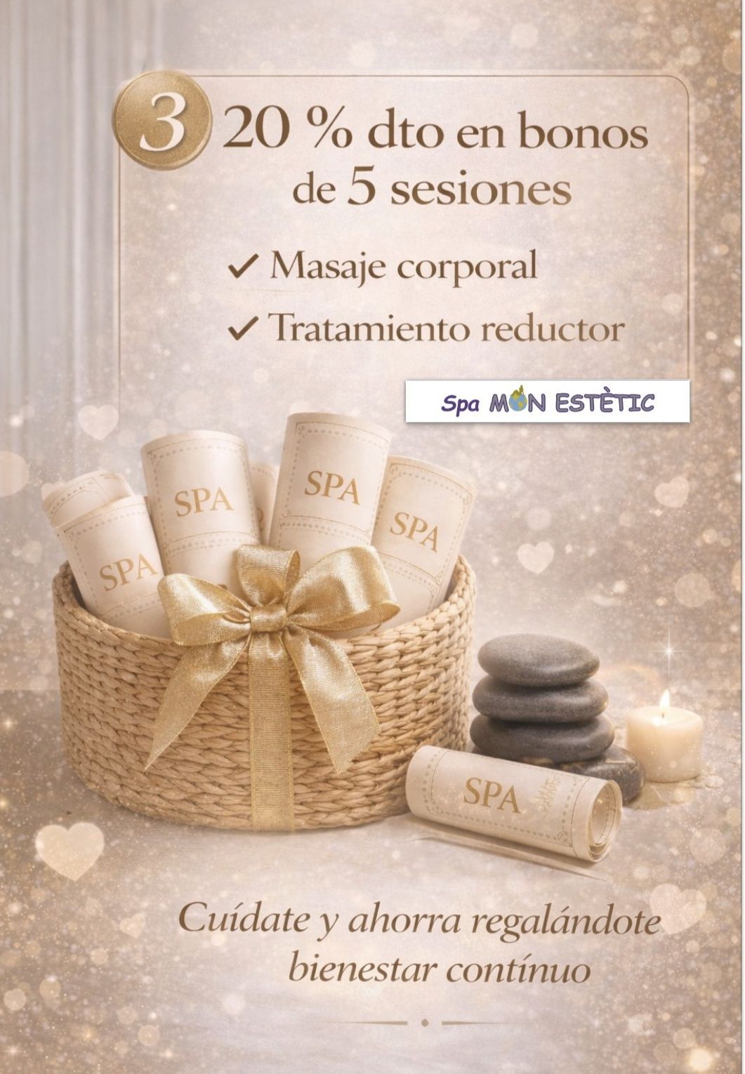 PRECIO BONO 5 SESIONES MASAJE CORPORAL 1 HORA (300 €) PROMO PRECIO 240 € Hasta 28/02/26*
